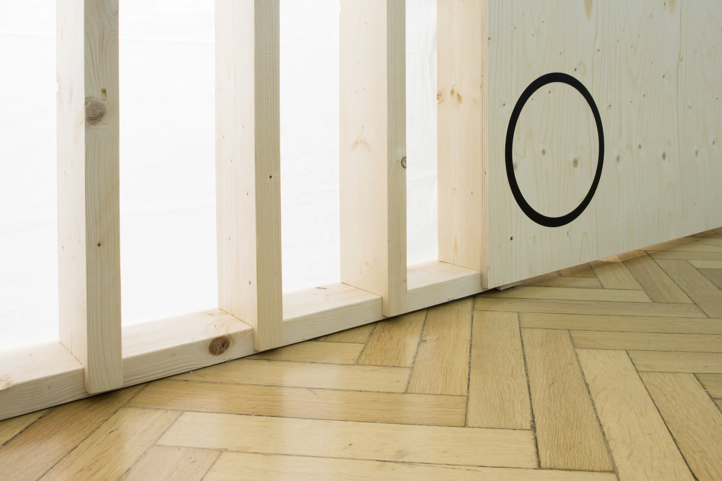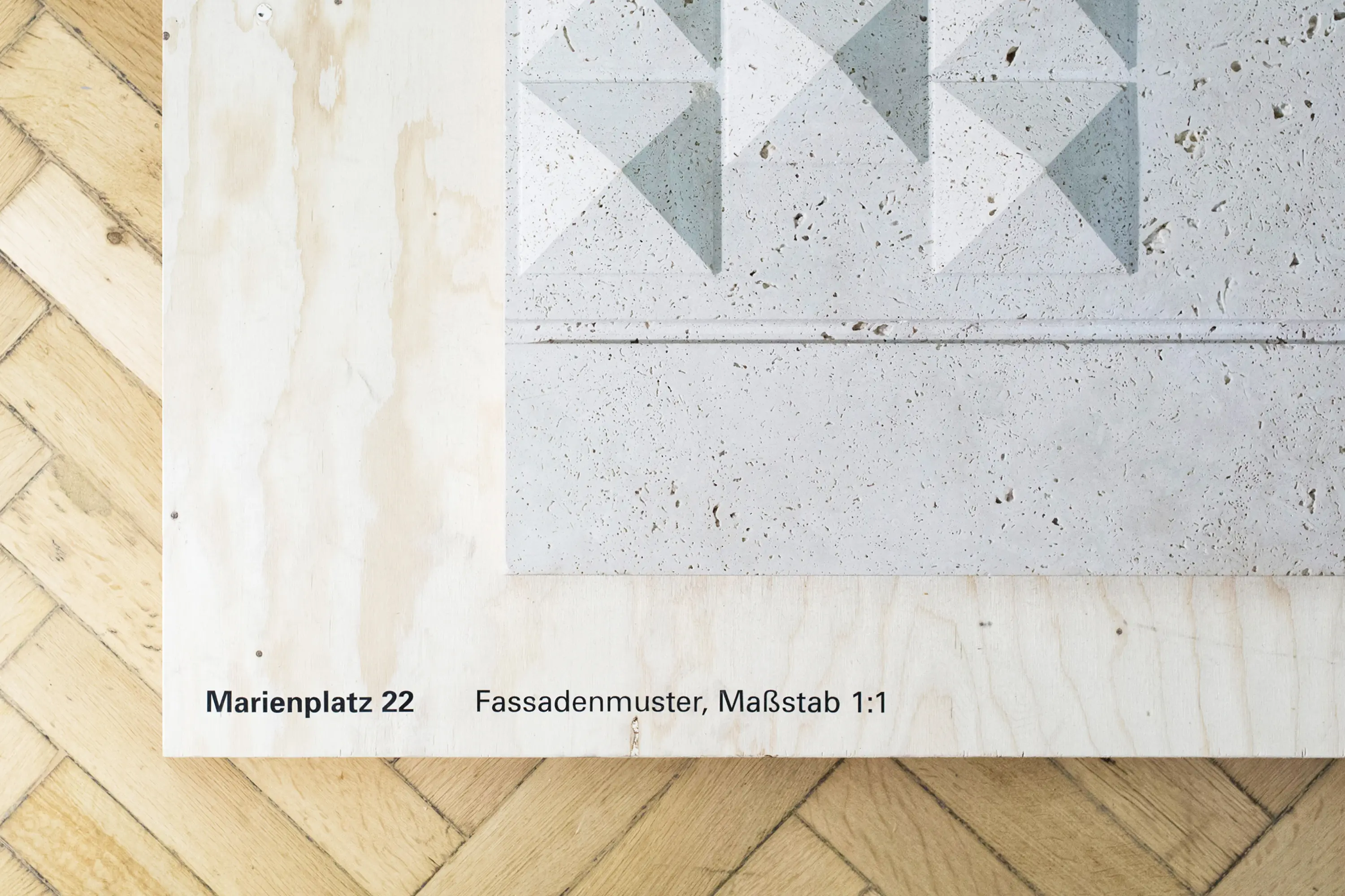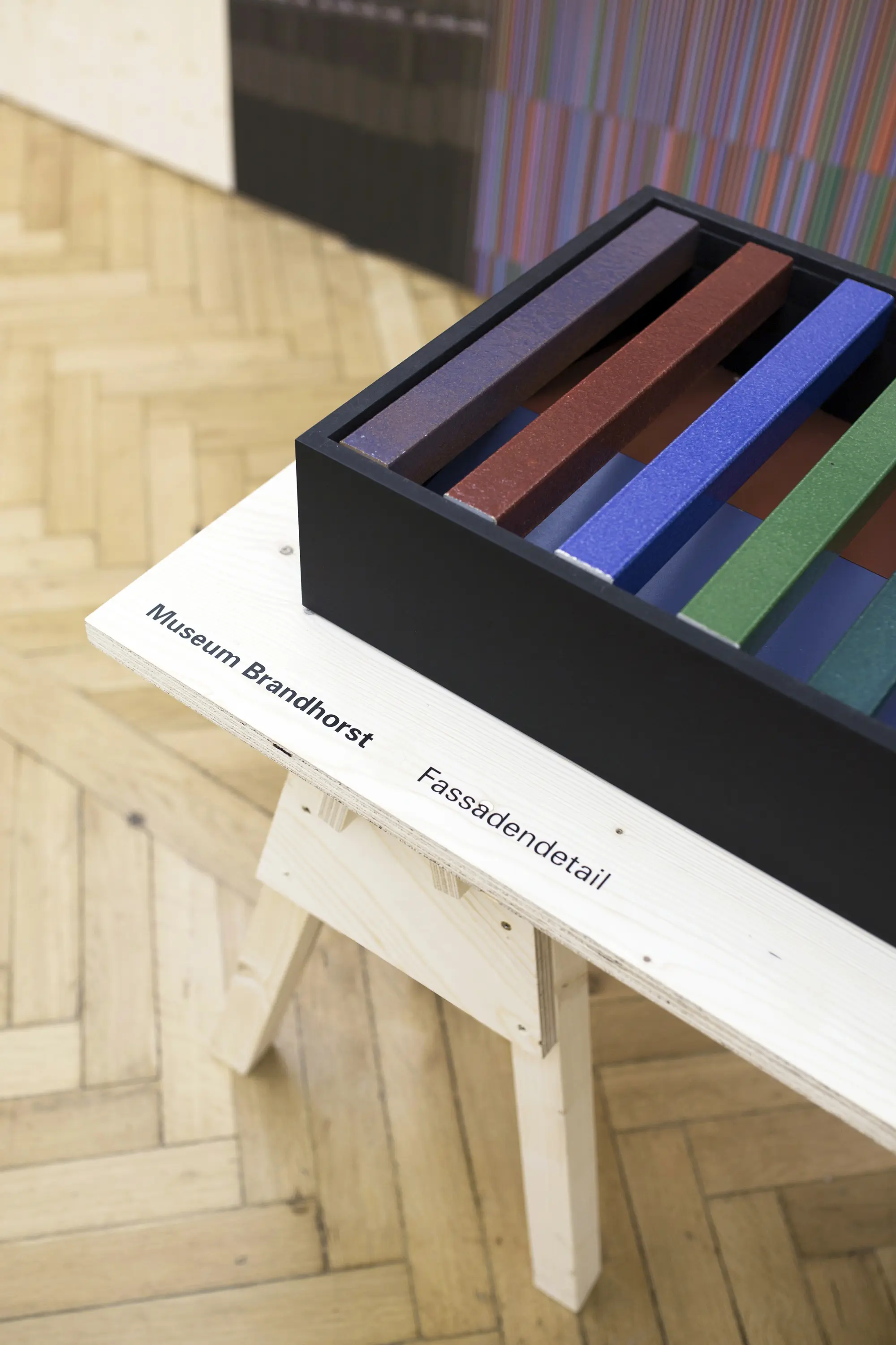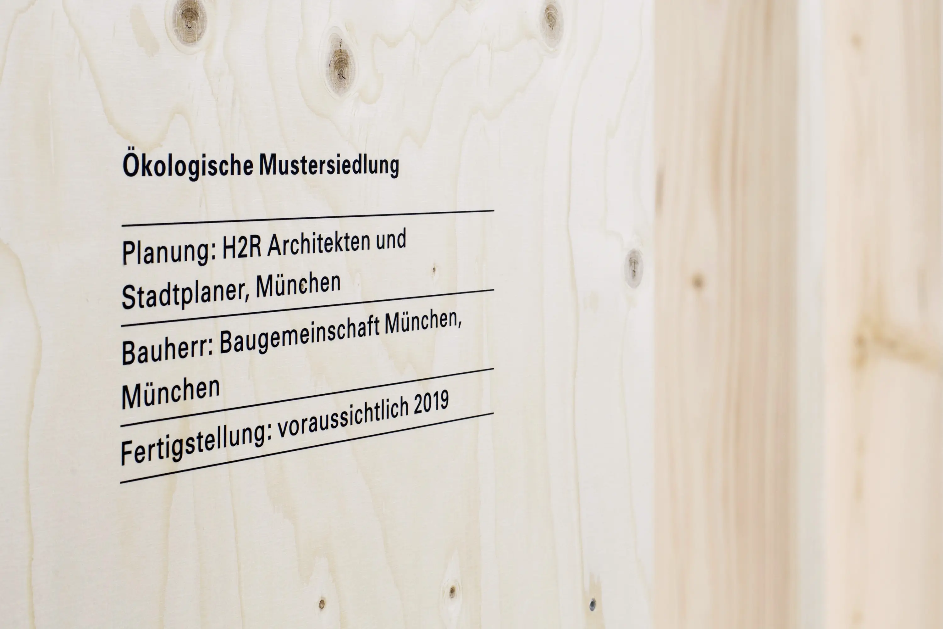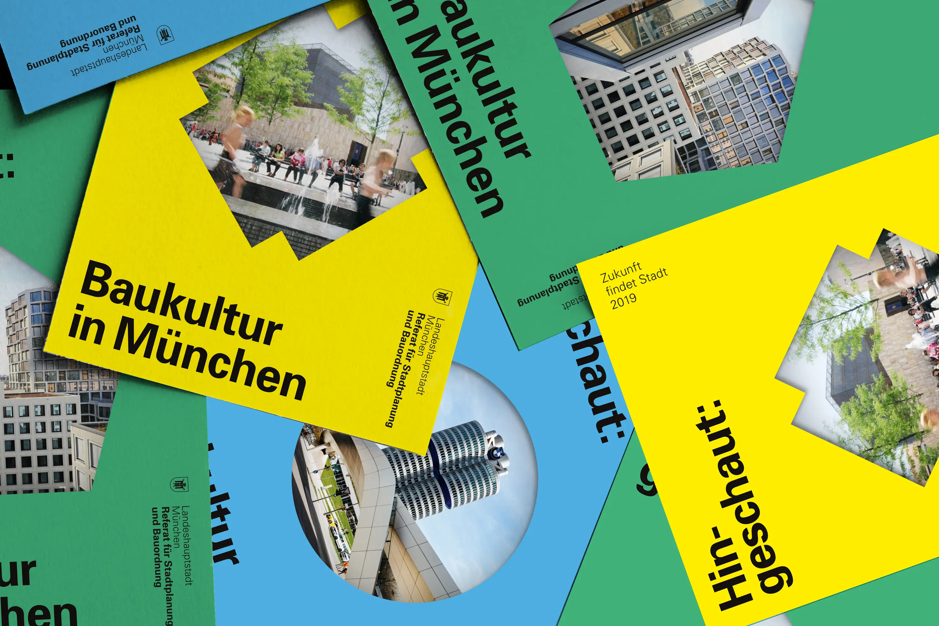 Die Ausstellungsarchitektur bestand aus einer umlaufenden Holzwand und frei stehenden Stelen. Auf Monitoren liefen Kurzfilme. Eine große Holzwand im Eingangsbereich bot Karten für Besucheräußerungen zur Baukultur. Auf einem Luftbild von München konnten die Besucher:innen ihre Lieblingsorte markieren.