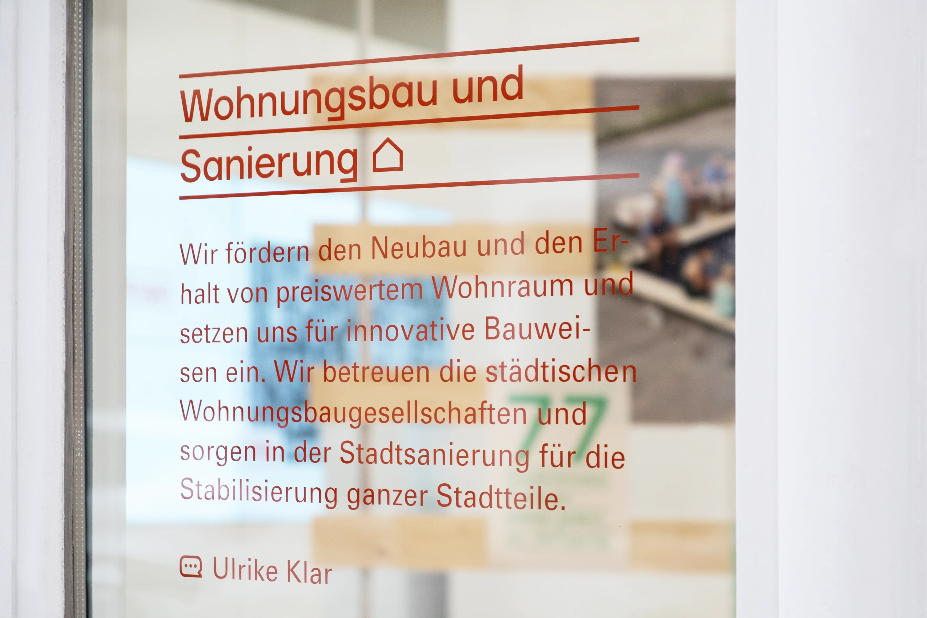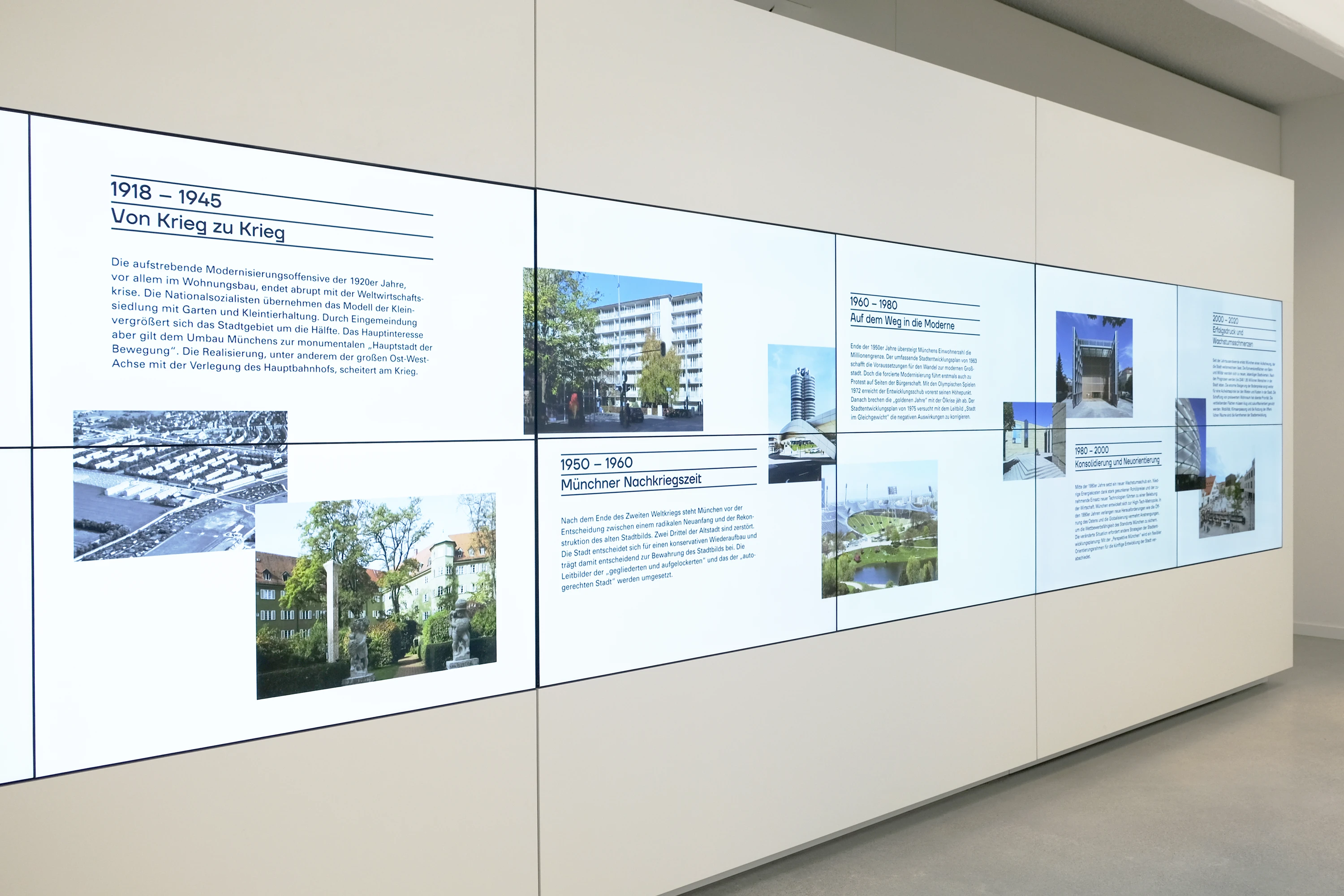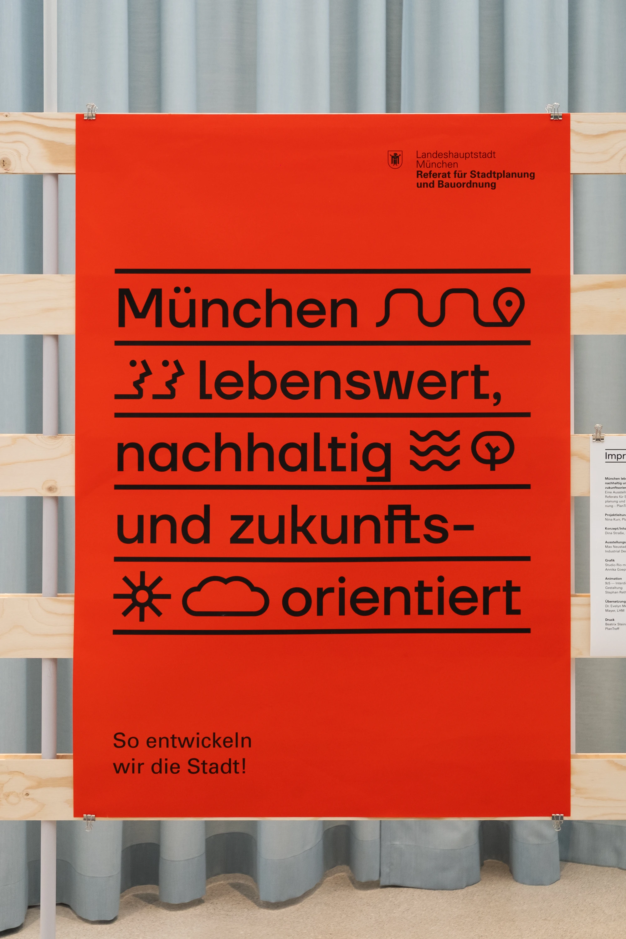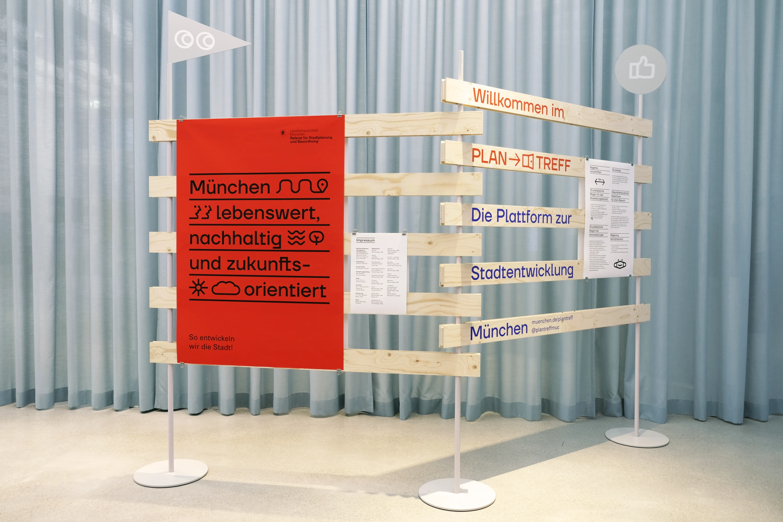 Nach eineinhalbjährigem Umbau wurde der PlanTreff mit größeren Räumen, neuem Konzept und jüngerem Erscheinungsbild wiedereröffnet. Für die Basisausstellung „München lebenswert, nachhaltig, zukunftsorientiert“ sowie für zukünftige Ausstellungen entwickelte Max Neustadt ein modulares System, das mit DIN-formatigen Postern bespielt werden kann. Wir erarbeiteten das grafische Konzept und gestalteten die Fensterbeschriftung.